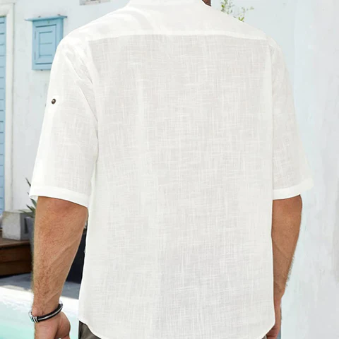 Cotton Linen Stand Collar Button Short Sleeve Shirt
