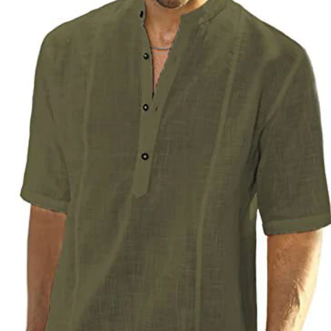 1 * Cotton Linen Stand Collar Button Short Sleeve Shirt