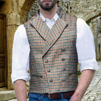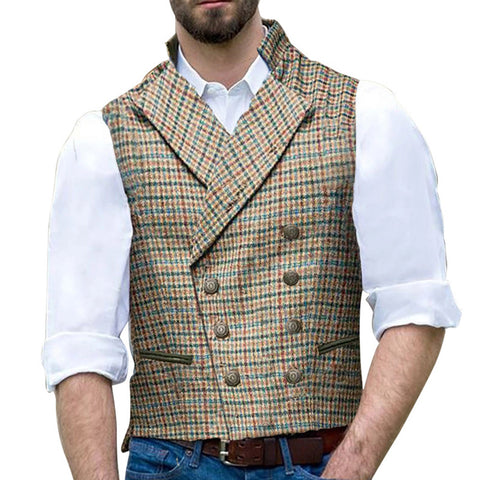 Men's Lapel Slim Fit Check Vest
